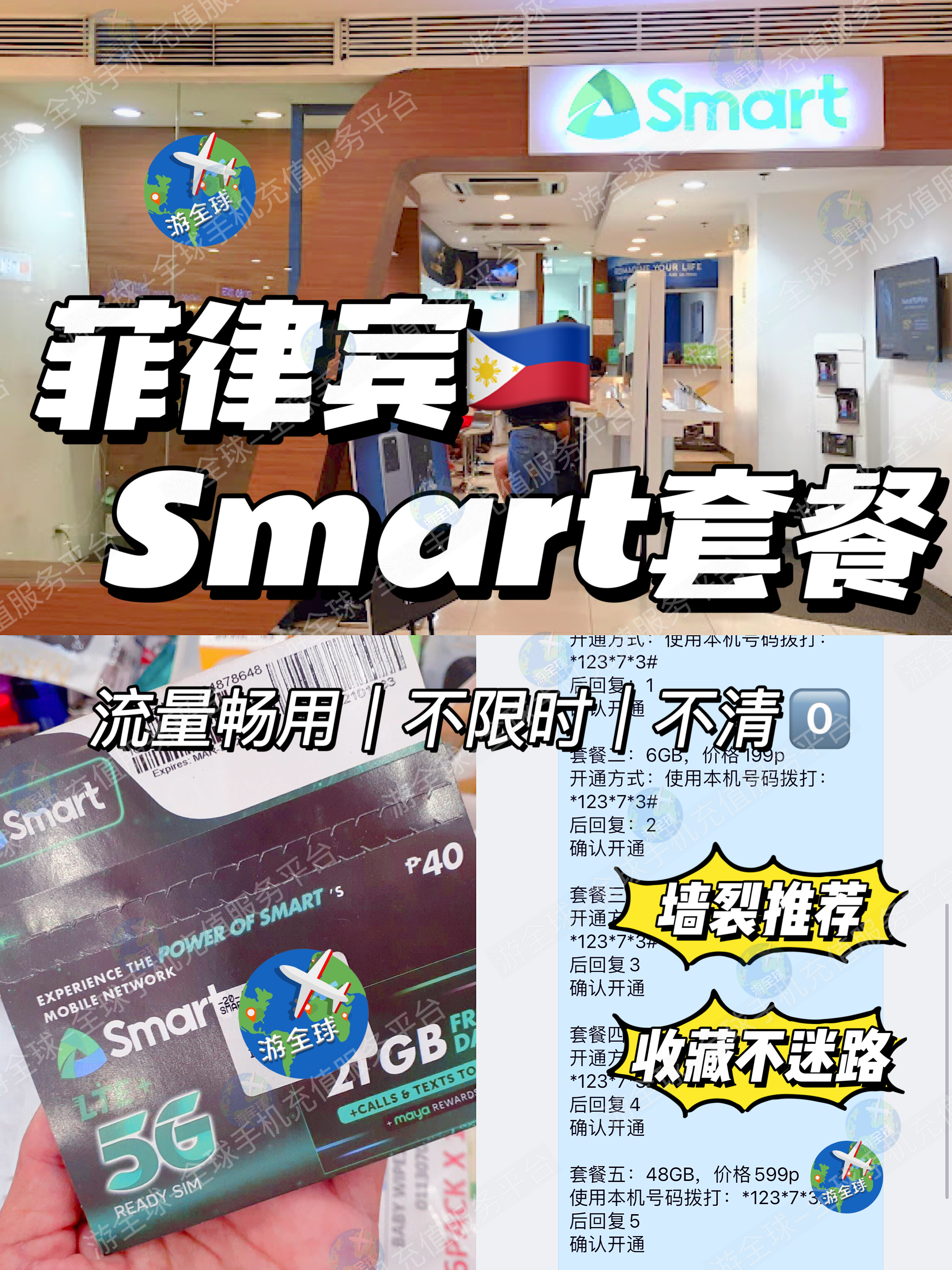 3.充值菲律宾SMART流量前请确保手机卡内有充足话费余额;